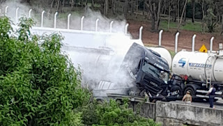 A perda de controle resultou em danos significativos ao caminhão, além de deixar o trânsito lento no local. Felizmente, o motorista saiu ileso do acidente, sem ferimentos graves.